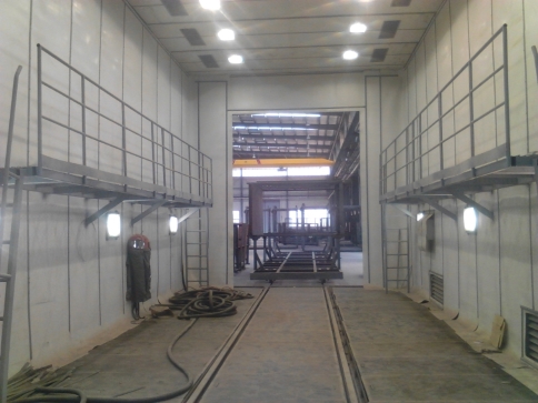 快速調整與適應:移動伸縮房采用伸縮式設計,可以根據鑄造件的尺寸快速調整內部空間,以適應不同大小的工件處理需求。這種靈活性使得鑄造廠可以更加高效地利用場地資源,提高生產效率。