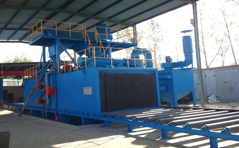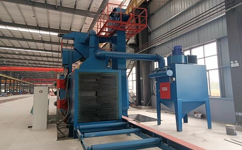 拋丸清理室設備簡述: 本設備用于構件產品涂裝前的噴丸除銹,從而去除工件表面銹垢和氧化皮,使之獲得一定粗糙度的潔凈金屬表面,消除產品結構件的焊接應力,增加漆膜附著力,提高工件的表面質量和防腐效果。