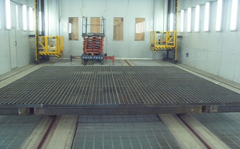 ? 以氣流方向劃分為三類。 大件線噴漆室 橫流式噴漆房: 氣流從房的一端流向另一端。此種機型成本低,易安裝。缺點是霧狀物沿著車身側(cè)面移動,且霧氣不能從操作者的面部周圍除去,工作環(huán)境不盡人意。