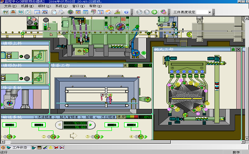 鋼板預處理 涂裝生產線 上位機動態模擬監控系統(監控中心) 整個設備采用上位機動態模擬監控系統(如下圖 監控中心),以便能夠 監視全線的工作狀態, 對全線實行優化控制。采用動態模擬監控系統大大提高了系統的機電一體化水平,并且使系統從一套“黑箱”系統變成可視并且便于操控的系統。