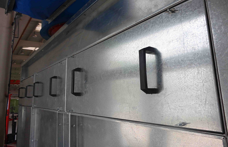 采油樹天然氣噴涂生產線噴漆房工作原理:噴漆時,外部空氣經進風口初、中效過濾棉過濾后由送風機送入到噴漆房內靜壓室,再經靜壓室二次過濾分流后進入漆房作業空間,氣流在工件周圍形成風幕。這時漆房內有載風速可達0.40m/s以上,噴漆時產生的漆霧不會在操作者呼吸帶處停留,而隨氣流迅速下降,之后在排風機的作用下,