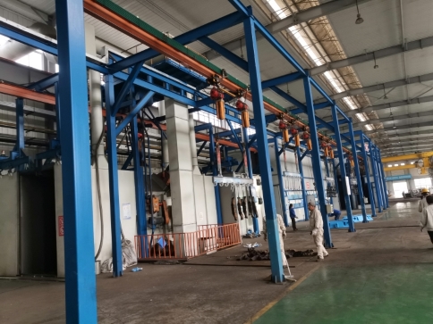 涂裝噴粉線工藝流程分為:前處理、噴粉涂裝、加熱固化。前處理有手動簡易工藝和自動前處理工藝,后者又分自動噴淋和自動浸噴兩種工藝。工件在噴粉之前必須進行表面處理去油去銹。