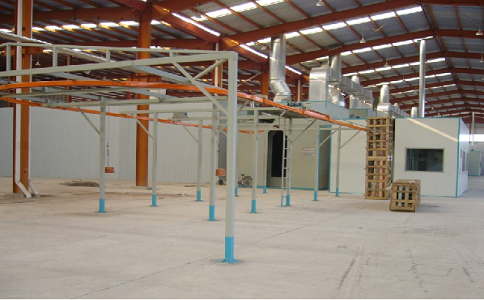 噴粉 涂裝生產(chǎn)線 粉末涂料通過靜電粉末噴涂設(shè)備噴涂在工件表面,在靜電作用下,粉末均勻吸附在工件表面,形成粉末涂料;粉末涂料經(jīng)高溫烘烤、整平、固化后成為不同效果的最終涂料。噴涂效果在機(jī)械強(qiáng)度、附著力、耐腐蝕性、耐老化性等方面優(yōu)于噴涂工藝。