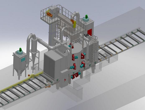輥道通過式拋丸機(jī)示意圖