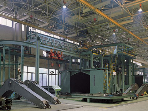 懸鏈通過式拋丸機按工件輸送方式可分為連續式、步進式、積放式,主要適用于大批量的結構、鑄造、鍛造、鋁合金等工件的表面清理強化,去除銹、氧化皮、粘沙、污物等。該設備可實現定點裝卸、定點拋射工序,單點吊重范圍廣:50~2000kg。