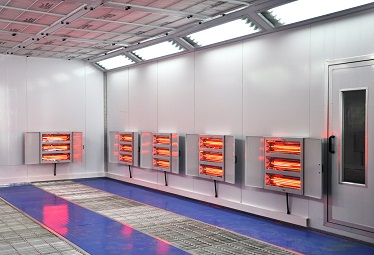 電加熱烤漆烘干房通過加熱管對漆膜和密封膠進行固化, 可分為普通電熱管和紅外線加熱管,烘干后漆膜質量可靠,表面光澤度高,光亮柔和;可對任何氣體產生的熱氣直接干燥,不導電、不燃燒、無爆炸、無污染。其最大優(yōu)勢是前期投入成本低、升溫速度快,且干凈無污染,但缺點是運行成本高,耗電量大。