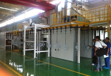 噴粉線,也叫噴塑線、靜電噴涂生產線、噴塑/粉設備,是以粉末涂料為原料,實現工件的表面處理,起到美觀、防水、防曬、防蝕防腐等作用。噴粉線按自動化程度分可分為自動化噴粉線、自動+人工補噴噴粉線、人工噴粉線,按輸送方式可分為普通懸掛鏈、積放式、自行葫蘆、地軌鏈等,可按客戶實際需求來進行設計!